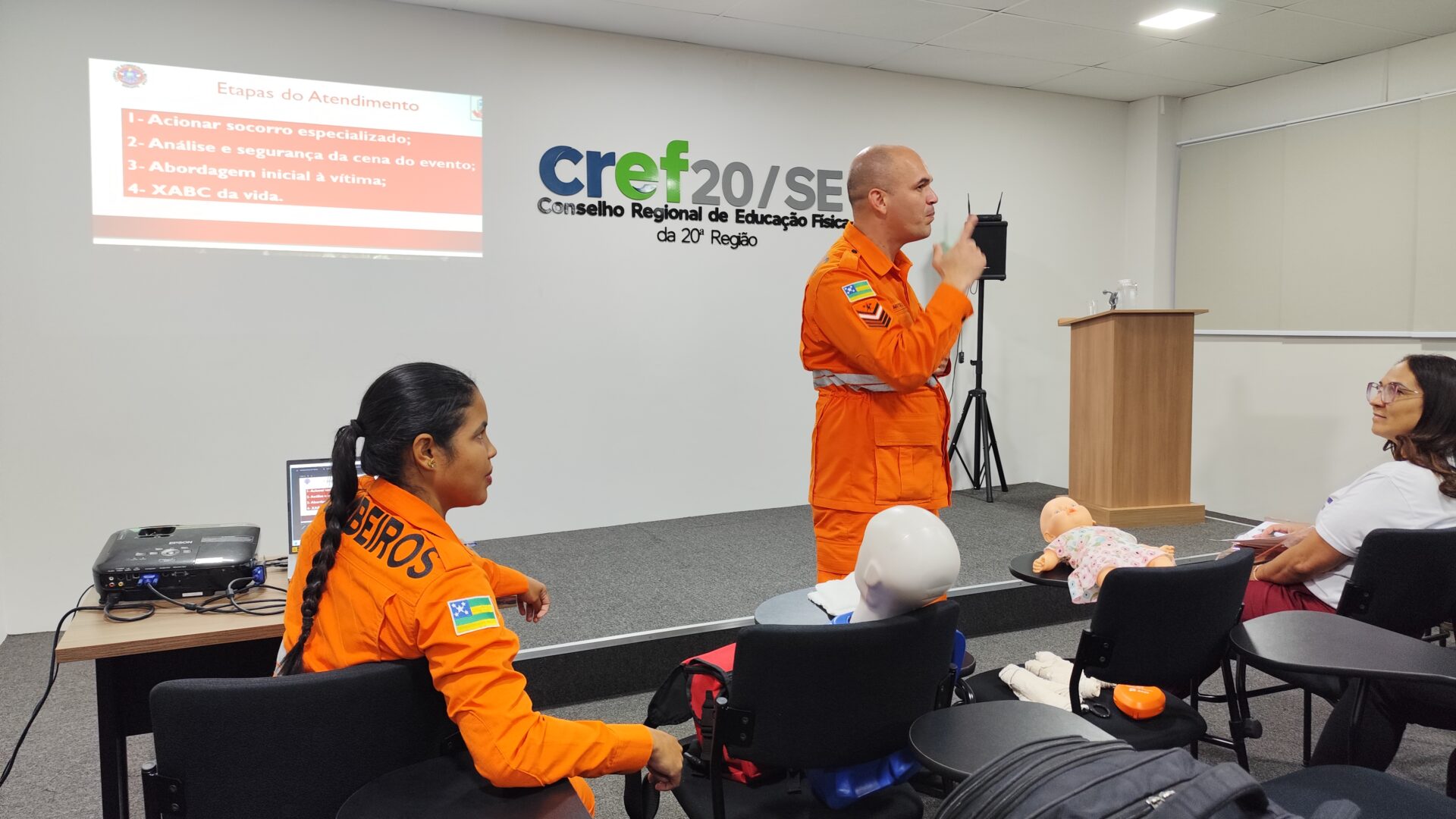 Na tarde desta segunda-feira (13), o Conselho Regional de Educação Física da 20ª Região Sergipe (CREF20/SE) realizou mais uma ação voltada à capacitação de seus colaboradores, desta vez com foco em primeiros socorros. A atividade foi conduzida por representantes do Corpo de Bombeiros Militar de Sergipe, que apresentaram orientações práticas e técnicas essenciais para o atendimento inicial em situações de emergência.